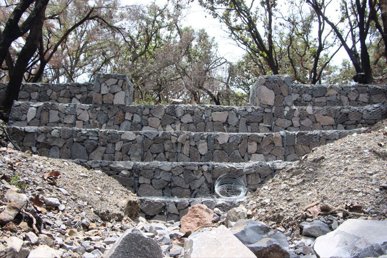 Megaterra, empresa desarrolladora de El Cielo Country Club, se ha sumado con una inversión de 12 millones de pesos en la construcción de cinco gaviones, para completar un total de 10 en el polígono boscoso que tiene este desarrollo. Es importante recordar que los gaviones sirven para desacelerar las avenidas de agua, fungiendo como presas filtrantes, que retienen el agua para bajar su velocidad, para irse filtrando poco a poco y que no llegue de golpe a las partes bajar, evitando inundaciones y los daños que estas ocasionan.