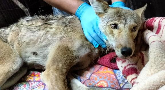 Rescata URFST a coyote atrapado en fosa de captación de agua