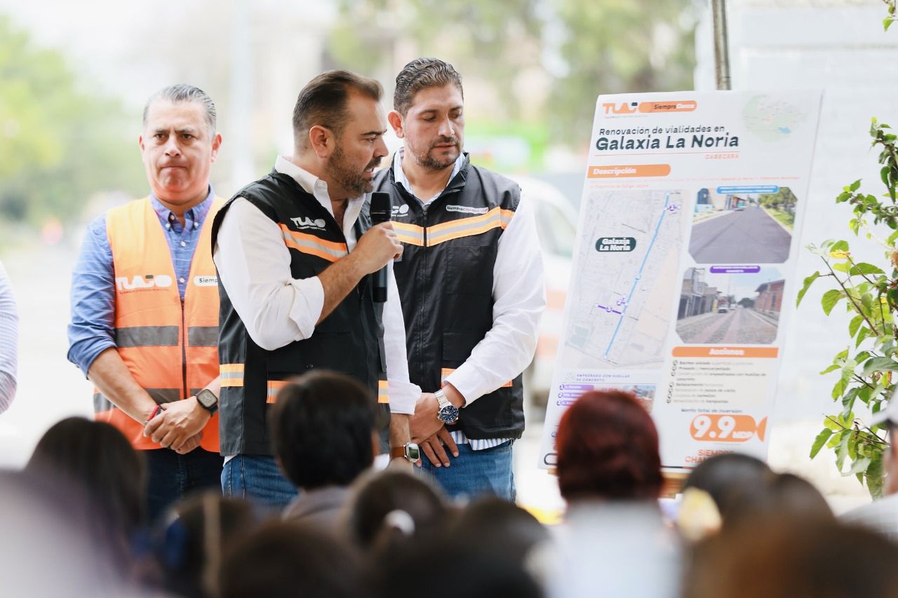 - La renovación de vialidades en Galaxia La Noria abarcó mil 740 metros lineales con una inversión de 9.9 millones de pesos, beneficiando a cientos de habitantes que ahora cuentan con calles más seguras, accesibles y duraderas.