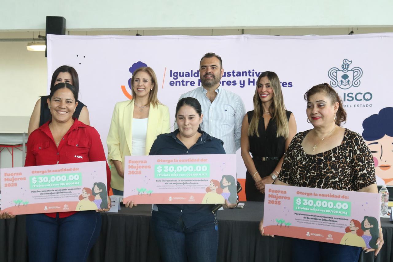 El presidente municipal de Tlajomulco, Gerardo Quirino Velázquez Chávez, junto con la secretaria de Igualdad Sustantiva entre Mujeres y Hombres de Jalisco, Fabiola Loya Hernández, encabezaron la entrega de apoyos del programa Fuerza Mujeres, mediante el cual más de 180 mujeres reciben ayuda económica que impulsa su autonomía y proyectos productivos.