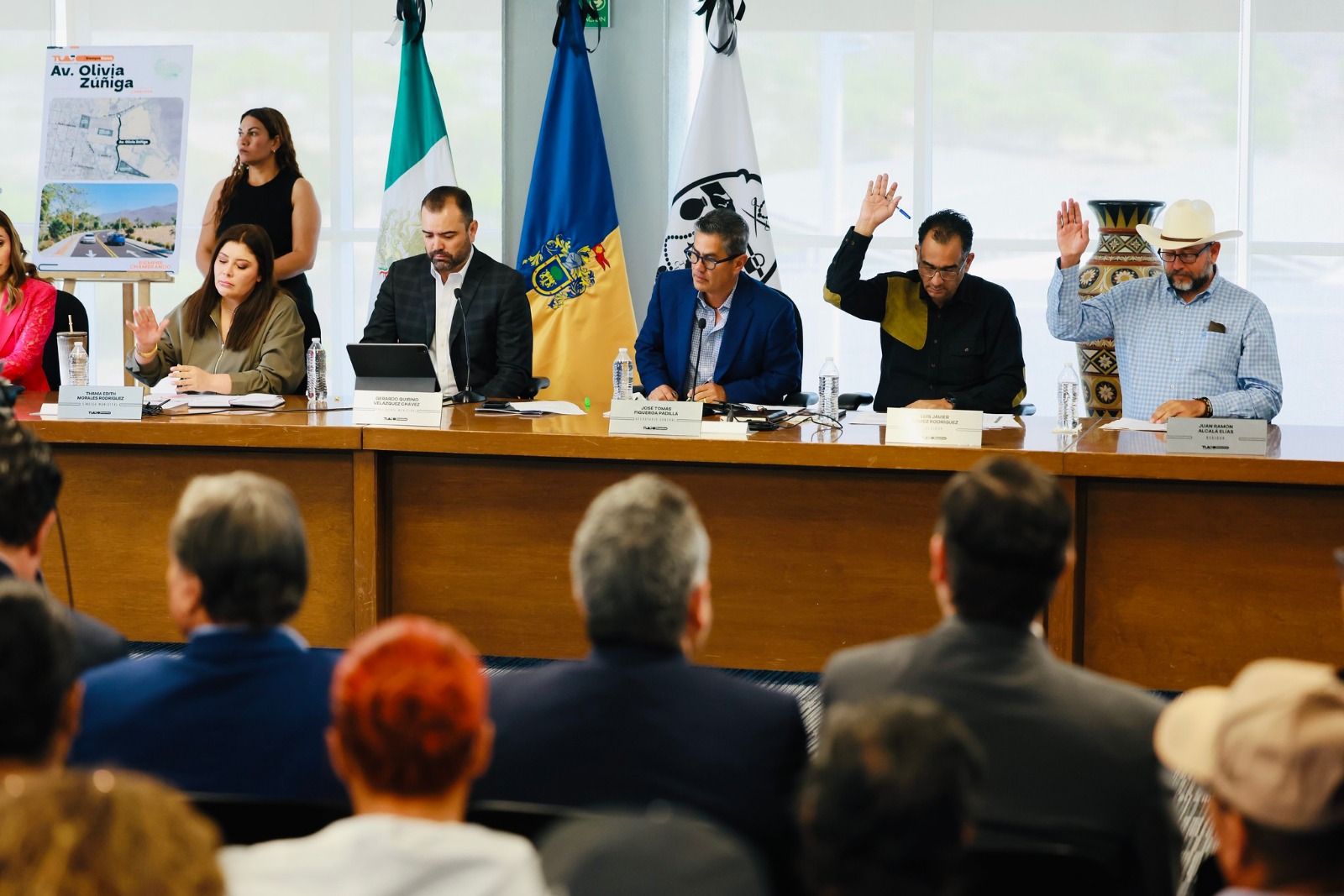 “Este ajuste presupuestal por más de 950 millones de pesos nos va a permitir consolidar temas importantísimos como los Centros Administrativos, la propia Cruz Verde de la Zona Valle, la Comisaría Municipal, la nueva Academia de Policías y el C5; pero también impulsar proyectos nuevos como el Mercado Artesanal que tendremos próximamente, continuar con el Plan de Infraestructura Hidráulica con algunos pozos estratégicos, nuevas fuentes de abastecimiento y conectividades para tener mejores condiciones en cuanto al agua superficial a la que estamos teniendo acceso, tanto de la PP5 como de la planta potabilizadora de El Zapote, además de avanzar con vasos reguladores en zonas donde tenemos problemáticas de inundación. Es decir, creo que es un ejercicio hecho a conciencia y reconozco a todas y a todos porque fue con su participación activa”, apuntó el alcalde.