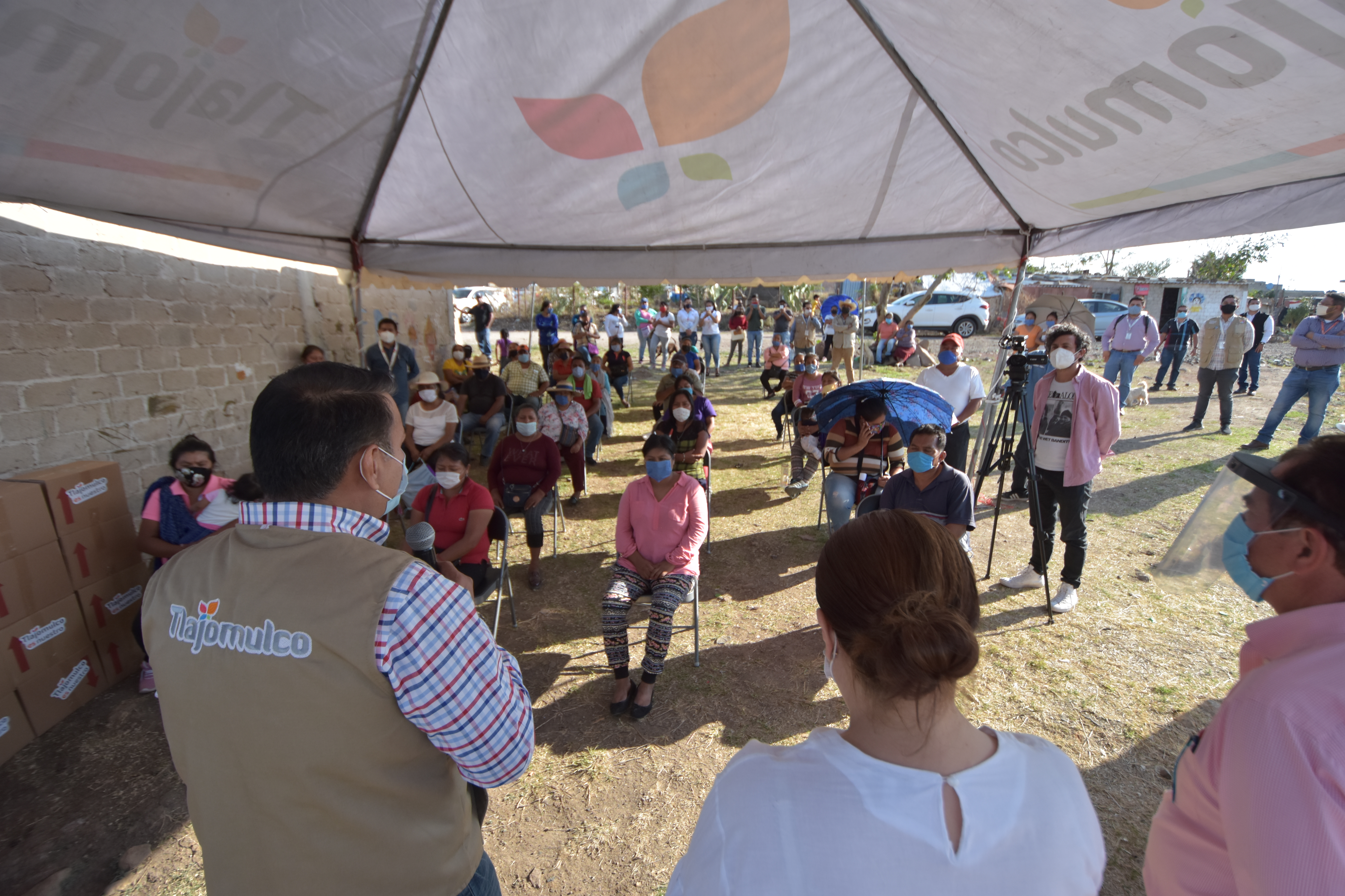 Como parte de la entrega del Programa Emergente de Apoyo Alimentario 2020 a grupos de situación de vulnerabilidad que habitan en el municipio, el Gobierno de Tlajomulco llevó cien paquetes al mismo número de familias que forman parte de la Comunidad Indígena de Cuexcomatitlán.