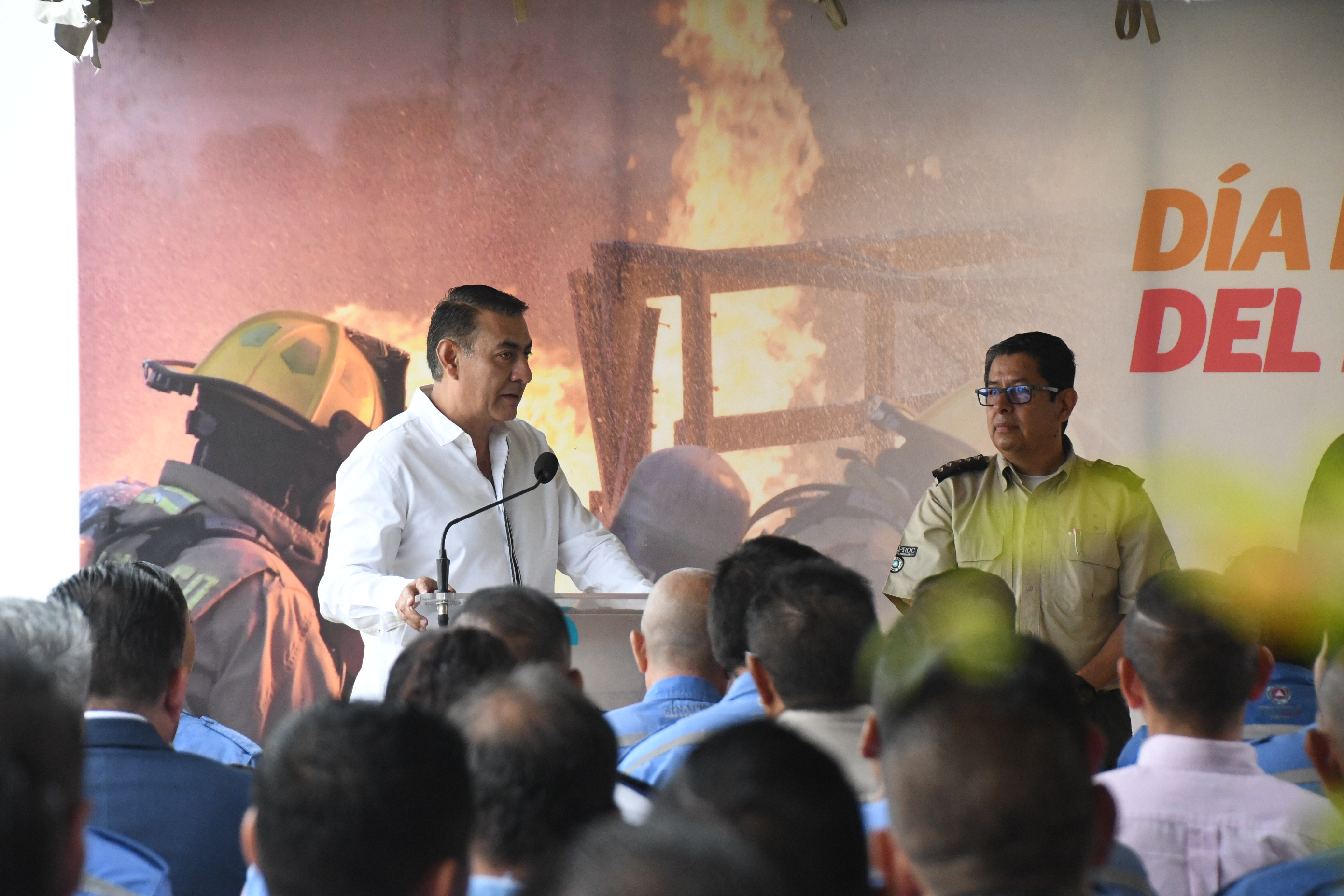 La entrega consistió en equipos de extricación vehicular, de cómputo, de combate de incendios forestales, así como uniformes de uso diario y un bono de una quincena para cada uno de los 104 bomberos de la corporación.