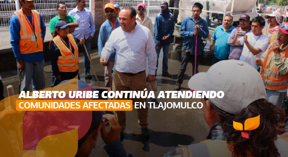 El presidente municipal de Tlajomulco, Alberto Uribe Camacho, continuó este día la supervisión de los avances de la recuperación de la normalidad en las comunidades y fraccionamientos que fueron afectados durante la contingencia ocurrida a causa de las inundaciones en Tlajomulco.