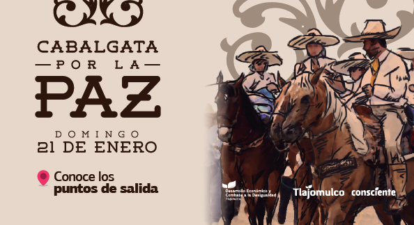 Te invitamos a participar a la "Cabalgata por la paz" que se realiza con el objetivo de fomentar la paz y unir a las delegaciones que pertenecen al municipio de Tlajomulco con valores como la armonía, equilibrio, solidaridad y respeto, a través de la Charrería, deporte nacional de orgullo y tradición.
