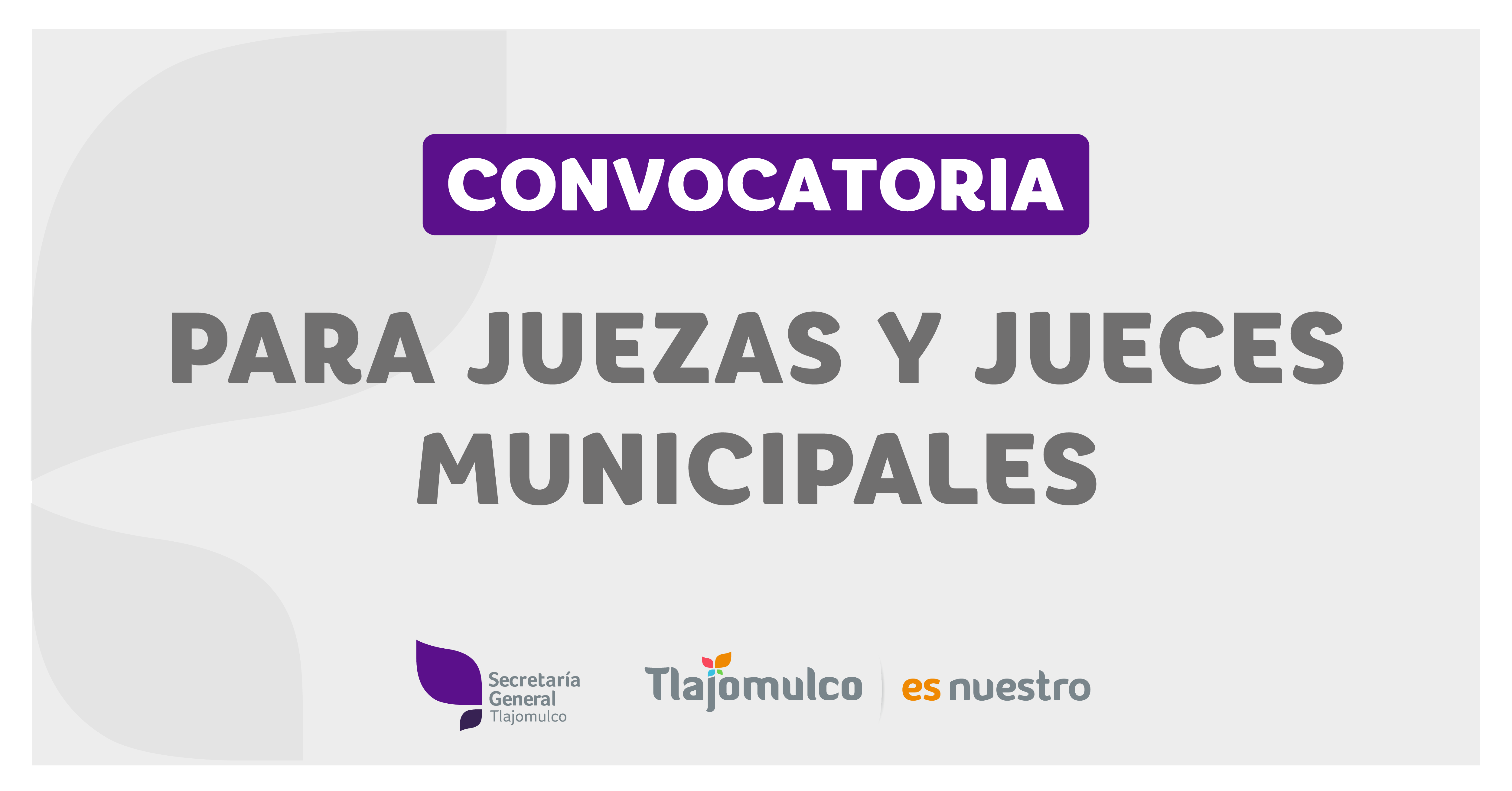 - - - A las y los Habitantes del Municipio de Tlajomulco de Zúñiga, Jalisco, con el objeto de elegir a quien o quienes ocuparan el cargo de Jueza o Juez Municipal, con fundamento en el artículo 86 de la Constitución Política del Estado de Jalisco, 56 y 57 de la Ley del Gobierno y Administración Pública Municipal del Estado de Jalisco, 63 fracción X del Reglamento de la Administración Pública del Municipio de Tlajomulco de Zúñiga, Jalisco, se les convoca con la finalidad la designación de ocupar el cargo de 5 (cinco) Juezas o Jueces Municipales, hasta el día 30 de septiembre de 2021 dos mil veintiuno. Convocatoria que se sujeta las siguientes: - - - - - - - - - - - - - - - - -