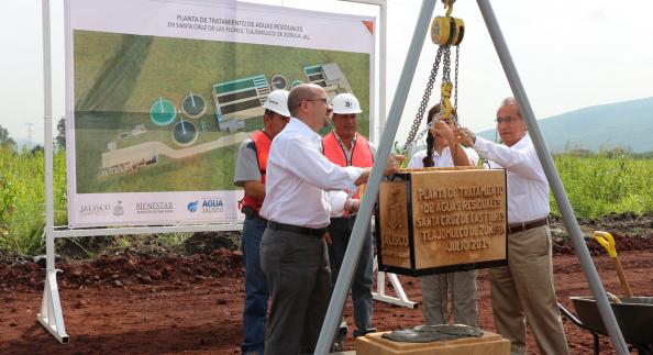 Este jueves, autoridades de Tlajomulco junto con la Comisión Estatal del Agua y la Secretaría del Medio Ambiente y Desarrollo Territorial en Jalisco, pusieron la primera piedra de lo que será la Planta de Aguas Residuales Santa Cruz de las Flores. Un proyecto que se trabaja en conjunto con Tlajomulco y el Gobierno de Jalisco, según comentó el Presidente Municipal, Ismael Del Toro: “Los recursos de esta obra son compartidos, nosotros como municipio habíamos etiquetado desde el presupuesto 2014 más de 33 millones de pesos para los colectores de toda esta cuenca, después pudimos lograr que se cerrara el acuerdo para que también con inversión del Estado se hiciera la Planta de Tratamiento”.