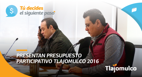 Acompañado de la Presidenta del Consejo de Participación Ciudadana, Tania Sarina Vázquez Mendoza, además de la Tesorera Municipal, Sandra Deyanira Tovar y Omar Enrique Cervantes Rivera, Coordinador de la Dirección de Participación Ciudadana y Construcción de Comunidad, se dieron a conocer los detalles del presupuesto participativo para el año 2016, siendo este uno de los mecanismos de participación ciudadana en el cual, durante seis años consecutivos, la ciudadanía a propuesto en que obras se debe invertir el 15% de lo recaudado por concepto del Impuesto predial, según lo establece el Reglamento de Participación Ciudadana para la Gobernanza del Municipio de Tlajomulco de Zúñiga, teniendo estimado invertir en un paquete de 10 obras 35 millones de pesos.