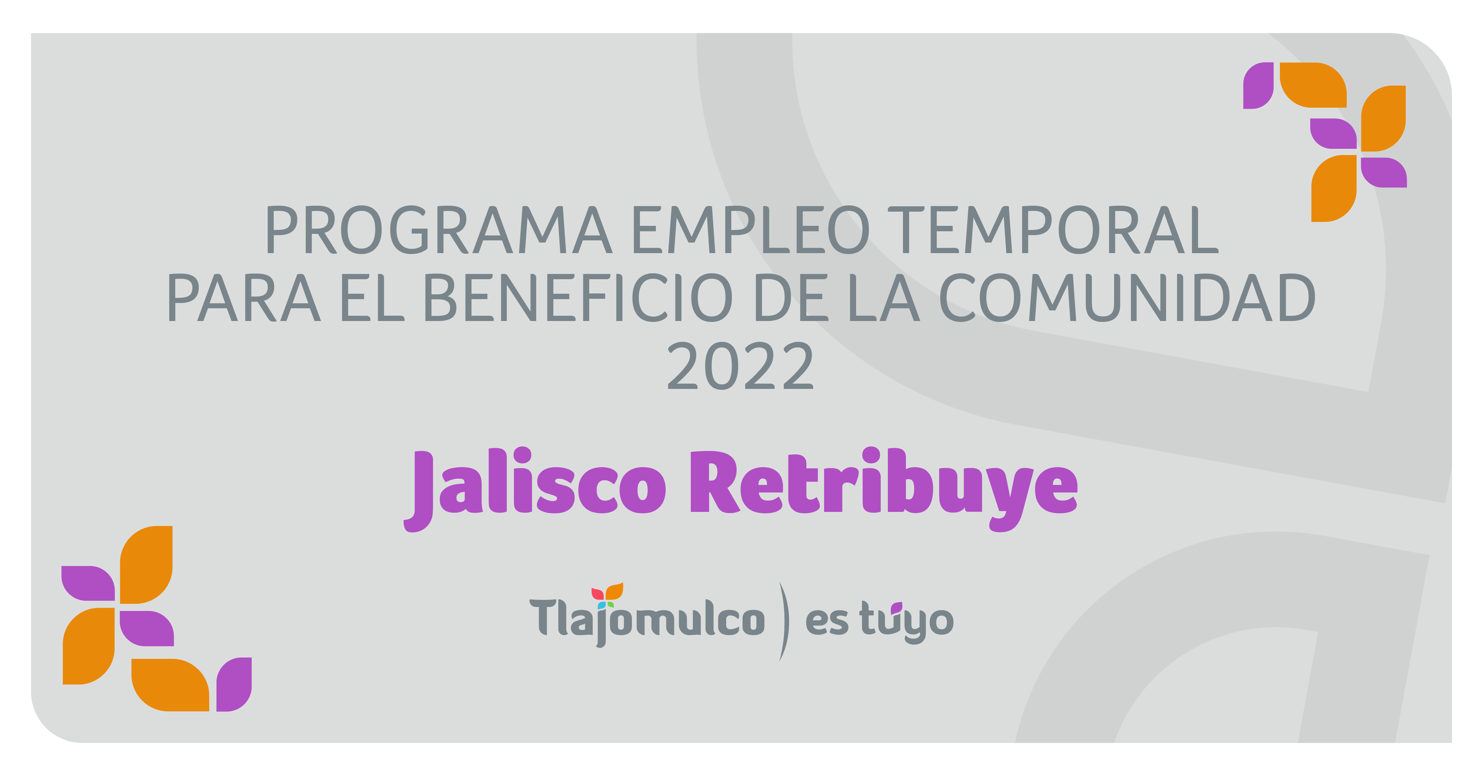 La Secretaría del Trabajo y Previsión Social del Estado de Jalisco, El Servicio Nacional de Empleo Jalisco, en coordinación con el Gobierno Municipal de Tlajomulco de Zúñiga, te hace la invitación a participar en el “Programa Empleo Temporal para Beneficio de la Comunidad 2022_Jalisco Retribuye”.